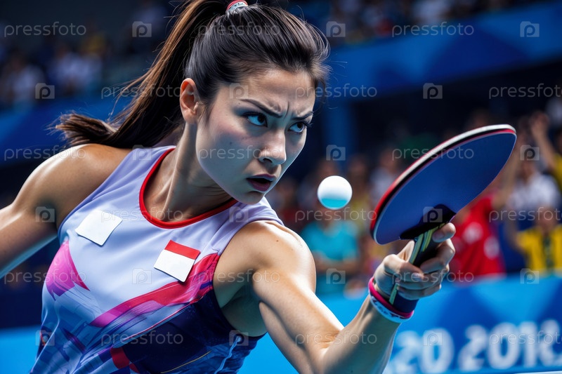 Женщина-спортсменка играет в настольный теннис на чемпионате мира и летних Олимпийских играх AI Generative
