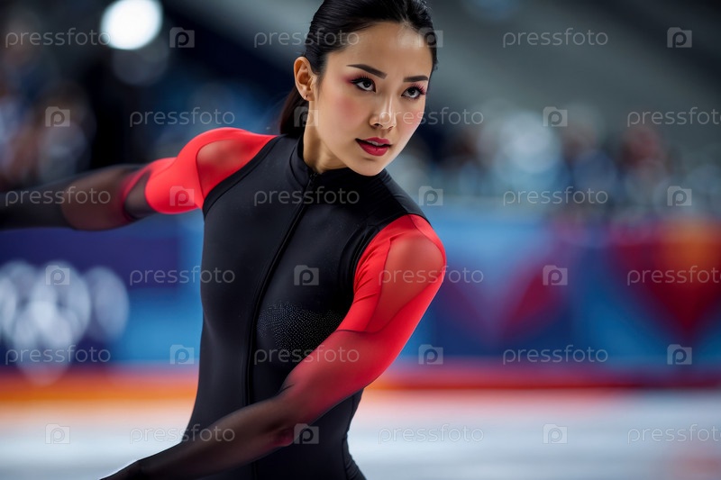 AI Generative Женщина-скейтер катается на коньках, зимние Олимпийские игры соревнования по фигурному катанию