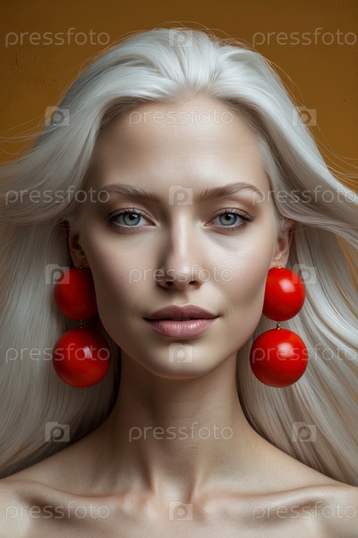 Портрет Молодая женщина чистый помада макияж модная модель красоты большие необычные серьги AI Generative