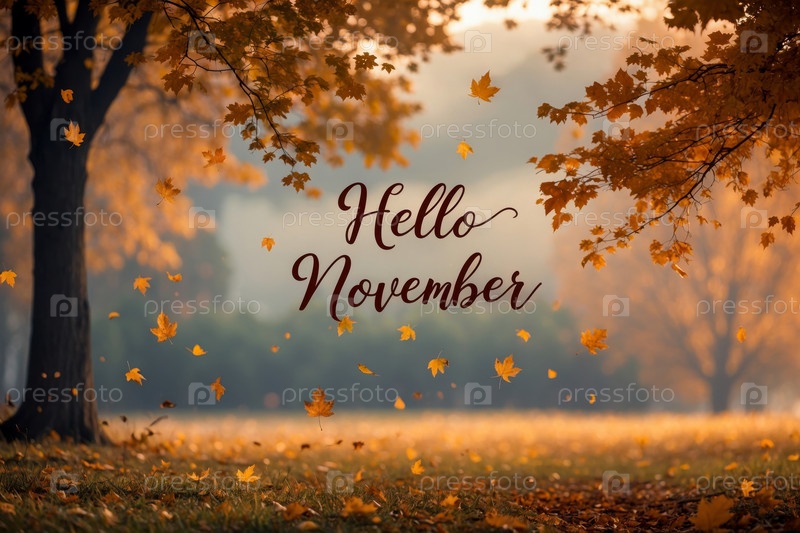 Карточная надпись Привет ноябрь осень-осень фоне желтые красные листья лист осенний AI Generative