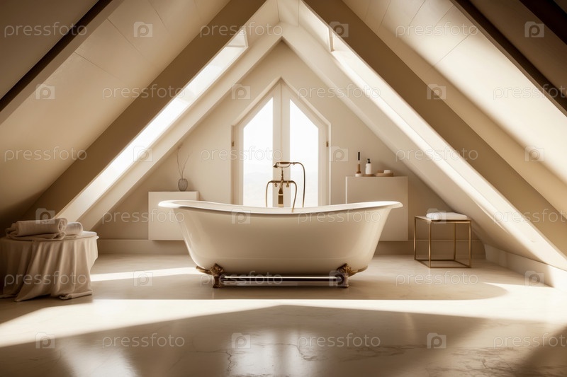 Апартамент ванная комната интерьер бежевого цвета, легкий дизайн туалета раковины, ванна, зеркало унитаз AI Generative