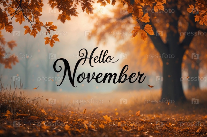 Карточная надпись Привет ноябрь осень-осень фоне желтые красные листья лист осенний AI Generative