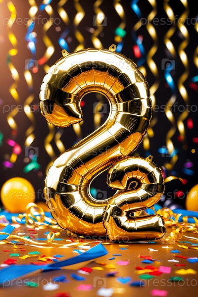 Гелийный день рождения шарик формы номер двадцать два, золотая буква фигура 22 праздник праздничный фон