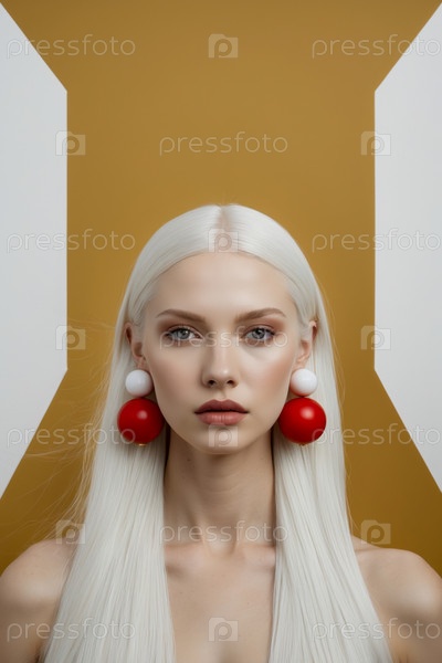 Портрет Молодая женщина чистый помада макияж модная модель красоты большие необычные серьги AI Generative