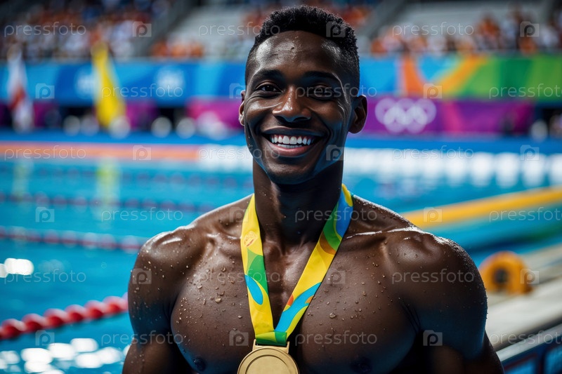 Награждение победителей чемпионов по спорту плавать в бассейне, летние Олимпийские игры соревнования AI Generative