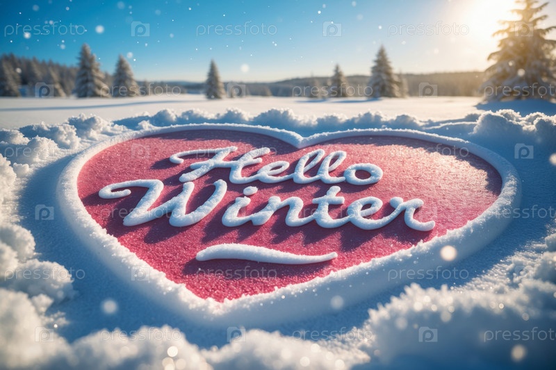 Баннер поздравительной открытки с надписью Здравствуйте, зима на фоне снежного леса AI Generative