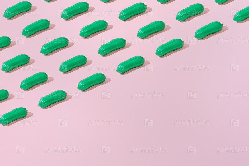 Творческий образ летнего огурца плоский лежит на пастельно-розовом фоне