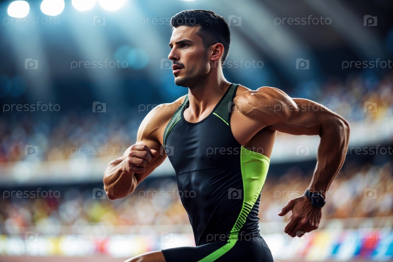 Спортсмен джогер мужчина бегущий забег марафон, летние виды спорта олимпийские игры соревнования генератив