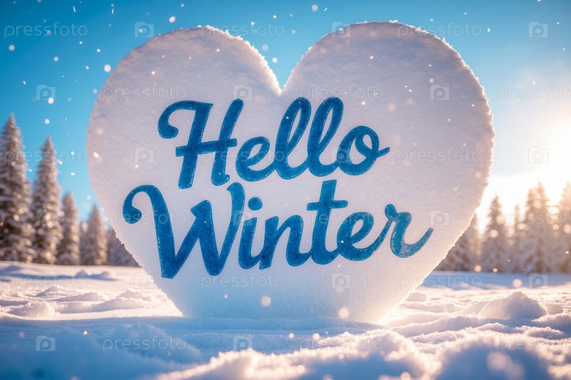 Баннер поздравительной открытки с надписью Здравствуйте, зима на фоне снежного леса AI Generative