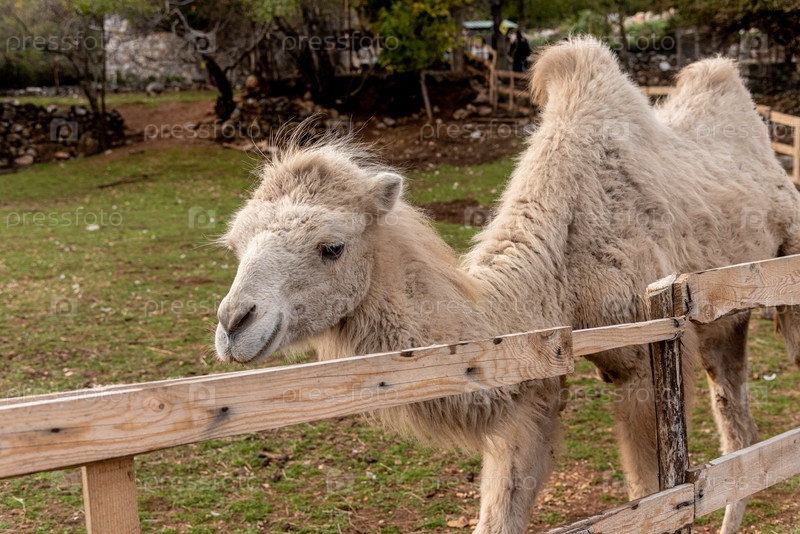 Верблюд в просторном падоке на домашней ферме млекопитающих Пастбищный луг ландшафтная трава на открытом воздухе