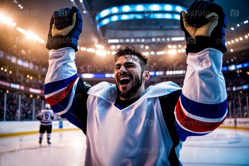 Спортивное хоккейное соревнование, мужская команда в турнире Зимние Олимпийские игры кататься на катере AI Generative