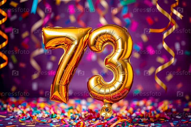 Гелий день рождения воздушный шар номер семьдесят три, золотые буквы фигура 73 праздник праздничный фон