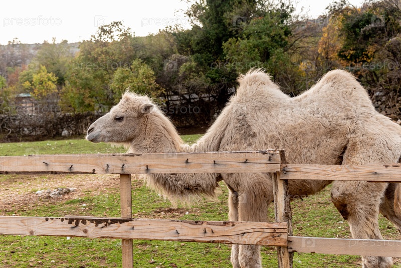 Верблюд в просторном падоке на домашней ферме млекопитающих Пастбищный луг ландшафтная трава на открытом воздухе