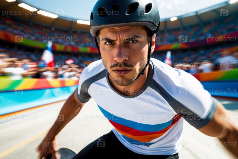 ИИ Генеративный Человек спортсмен скейтбордист, катающийся в скейт-парке на скейтбордах, летние Олимпийские игры соревнования