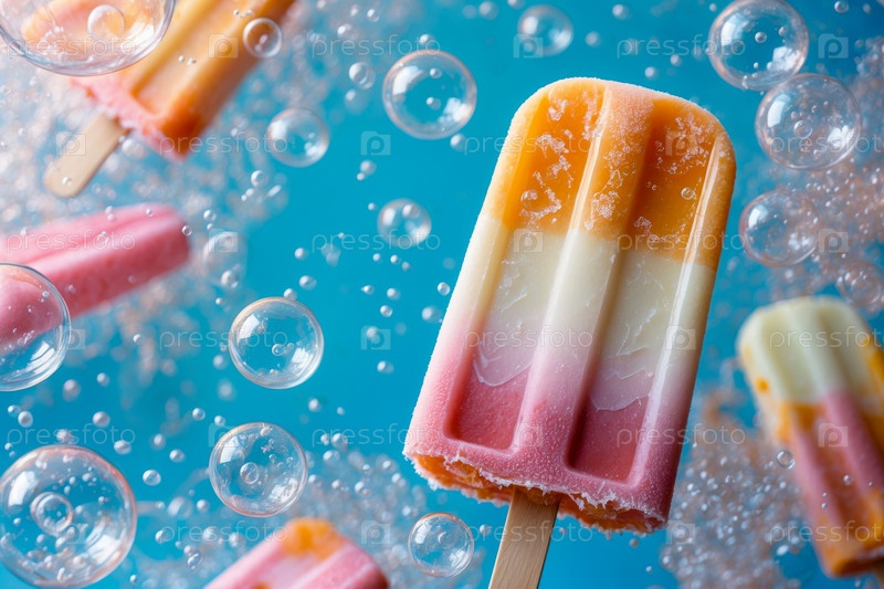 AI Generative Abstract необычный творческий десерт искусство мороженое декоративная радужная пена мыльные пузыри блеск фантастическая еда