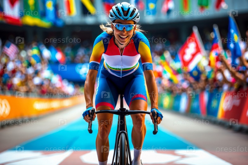 Спортсмен Велогонщик Езда Спортивный спорт Велосипедная гонка Летние Олимпийские игры Соревнования ИИ Генерирующая Женщина
