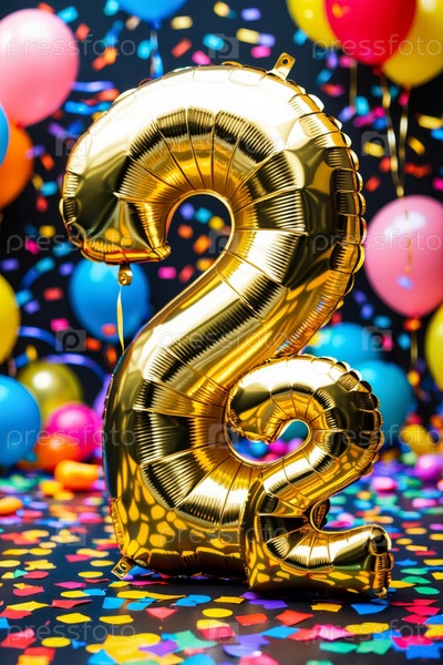 Гелийный день рождения шарик формы номер двадцать два, золотая буква фигура 22 праздник праздничный фон