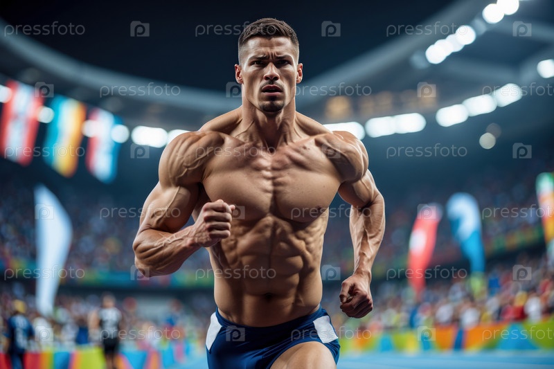 Спортсмен джогер мужчина бегущий забег марафон, летние виды спорта олимпийские игры соревнования генератив