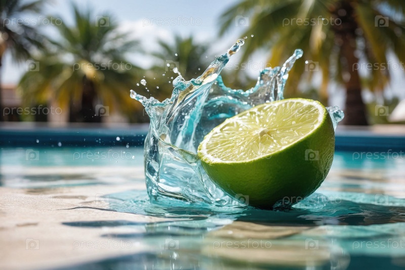 Экзотические плоды из лайма в распыленной воде на летнем бассейне праздничный фон AI Generative