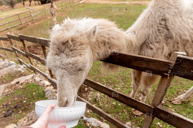 Верблюд в просторном падоке на домашней ферме млекопитающих Пастбищный луг ландшафтная трава на открытом воздухе