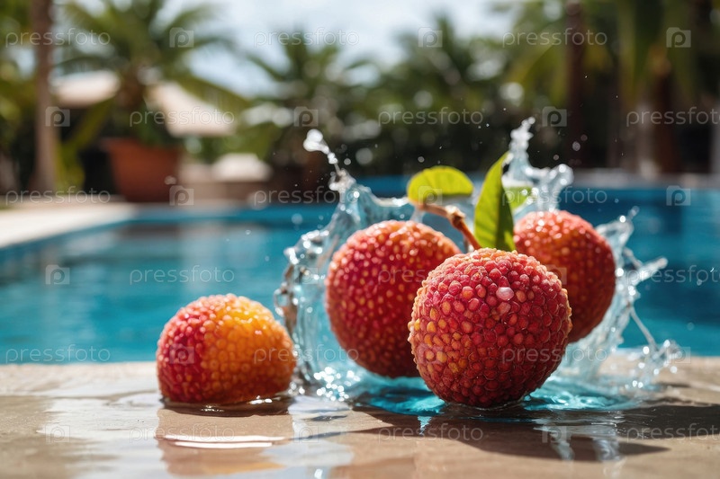 Экзотические фруктовые личики в распылении воды летом бассейн праздничный фон AI Generative