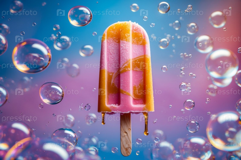 AI Generative Abstract необычный творческий десерт искусство мороженое декоративная радужная пена мыльные пузыри блеск фантастическая еда