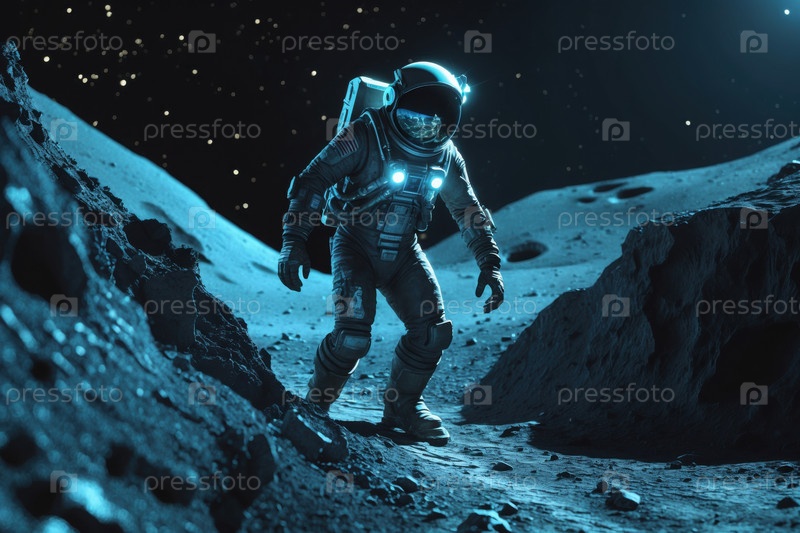 ИИ генеративный астронавт космонавт стоит на ландшафте Земля планета на фоне спутникового пространства