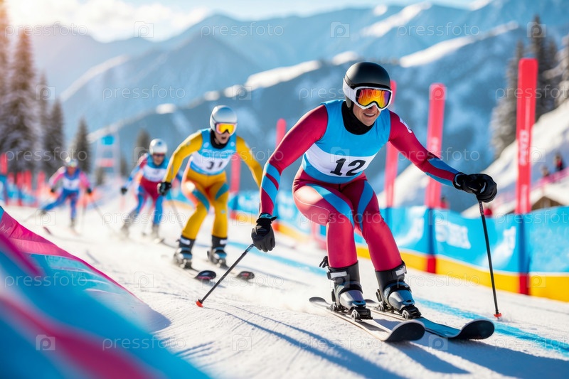 Лыжник вниз по горам на лыжах, зимние Олимпийские игры Конкурс Соревнование Состязания Турнир соревнований AI Generative