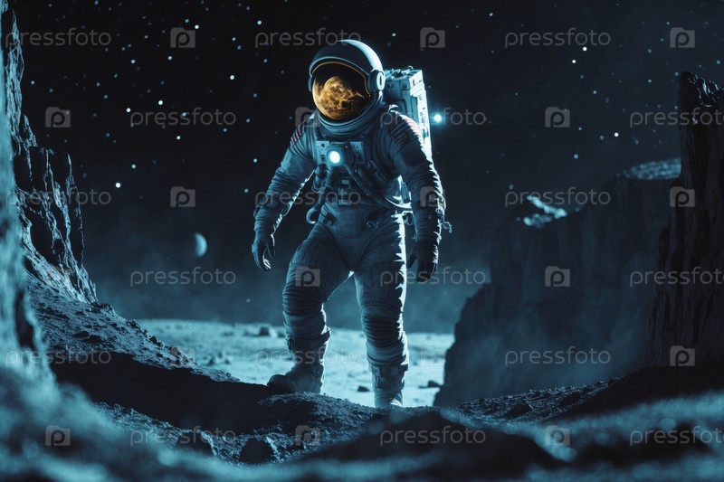 ИИ генеративный астронавт космонавт стоит на ландшафте Земля планета на фоне спутникового пространства