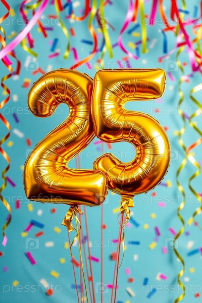 Гелийный день рождения шарик формы номер двадцать пять, золотая буква фигура 25 праздник праздничный фон