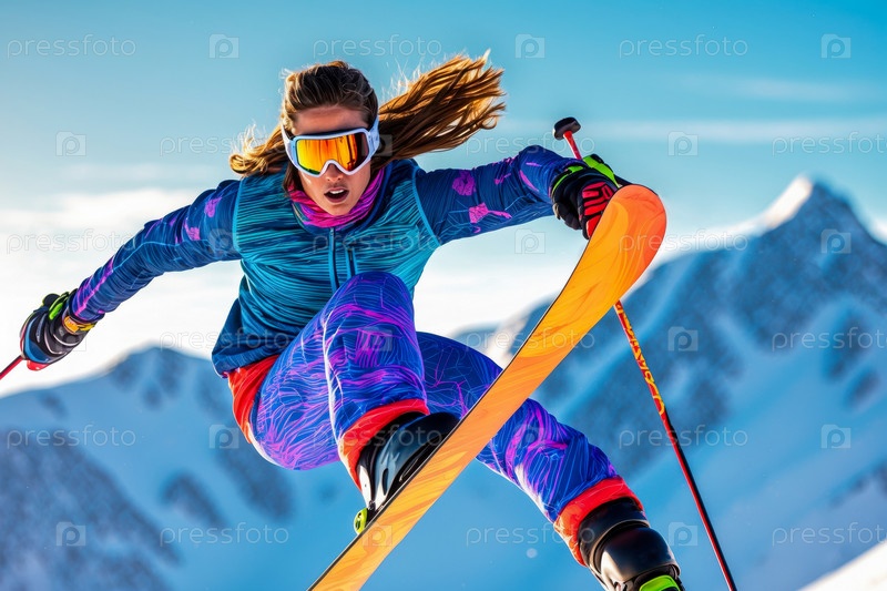 Лыжник вниз по горам на лыжах, зимние Олимпийские игры Конкурс Соревнование Состязания Турнир соревнований AI Generative