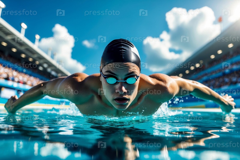 Генеративный Человек спортсмен пловчик плавание скоростная гонка в бассейне, летние Олимпийские игры соревнования AI