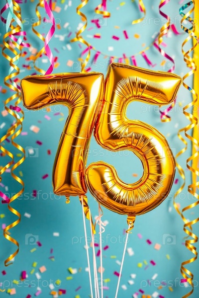 Гелий день рождения воздушный шар формы номер семьдесят пять, золотые буквы фигура 75 праздник праздничный фон декор