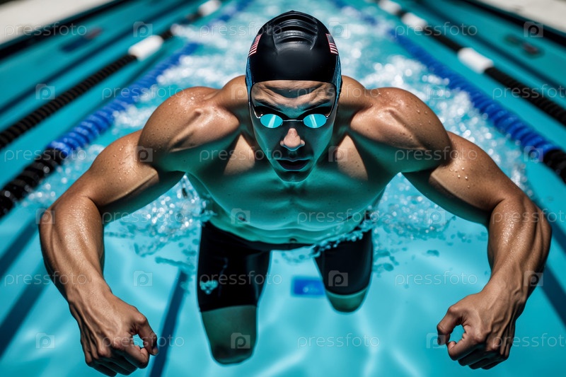 Генеративный Человек спортсмен пловчик плавание скоростная гонка в бассейне, летние Олимпийские игры соревнования AI