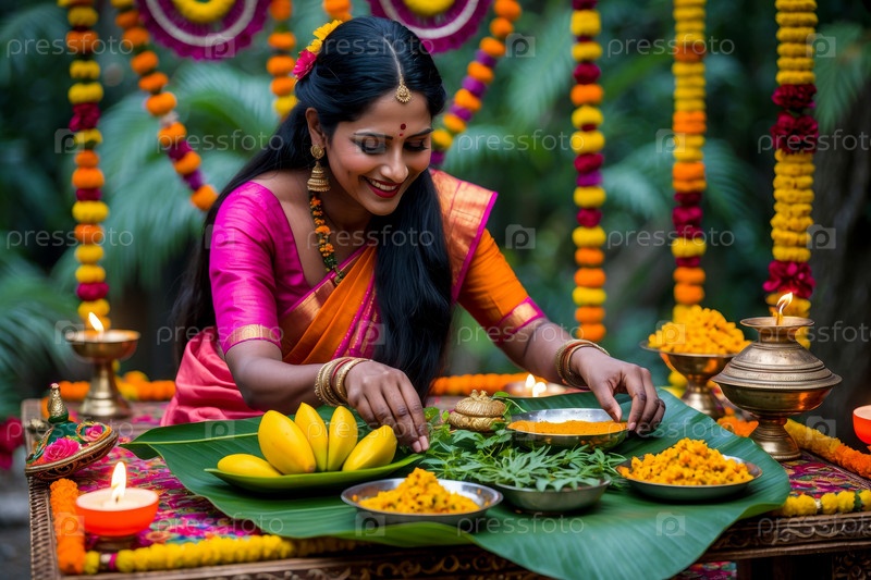 AI Generative People семья индуисты за традиционным обеденным столом празднуют Угади Югада Новый год в первый день месяца Чайтра