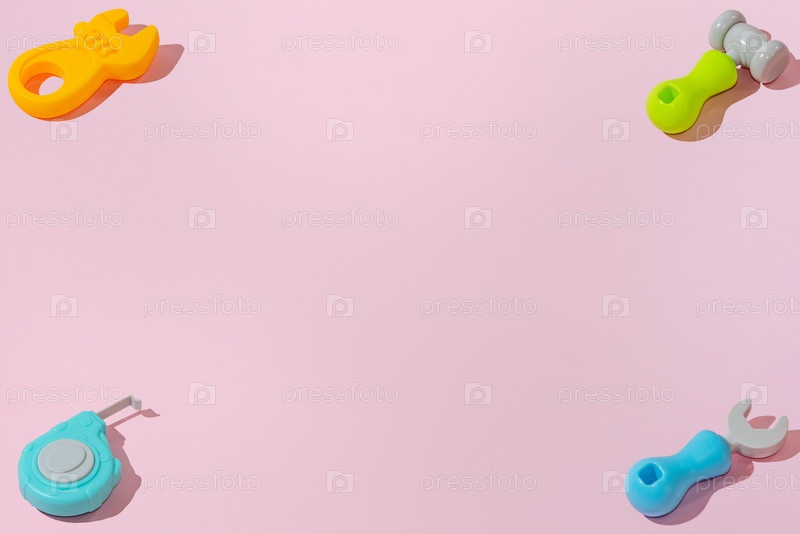 Творческие абстрактные инструменты для построения шаблона Flat Lay на розовом фоне