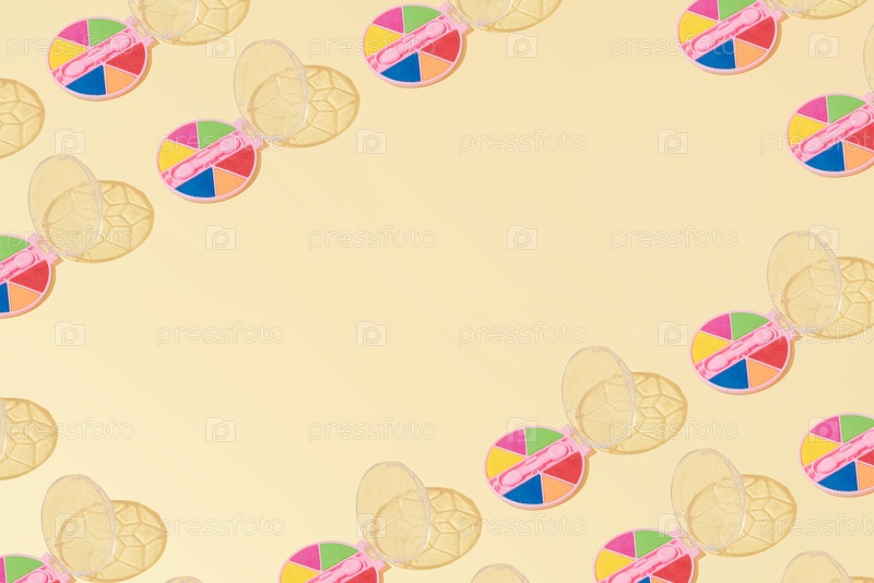 Креативная абстрактная косметическая макияж глазной тень шаблон плоский лой желтый копировальный пространство