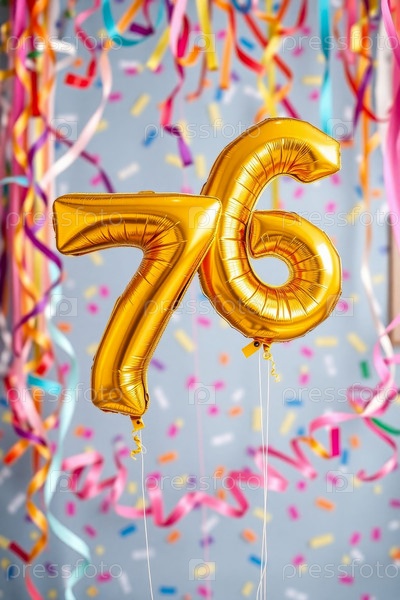Гелий день рождения воздушный шар формы номер семьдесят шесть, золотые буквы фигура 76 праздник праздничный фон декор