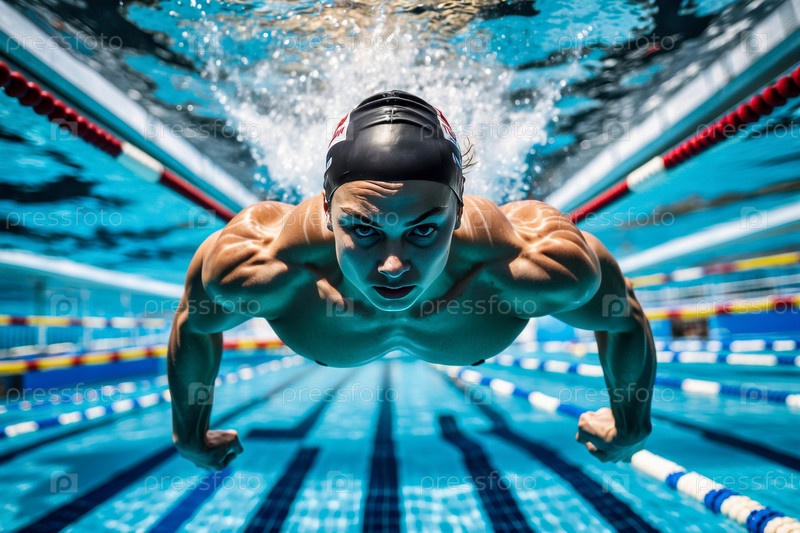Генеративный Человек спортсмен пловчик плавание скоростная гонка в бассейне, летние Олимпийские игры соревнования AI