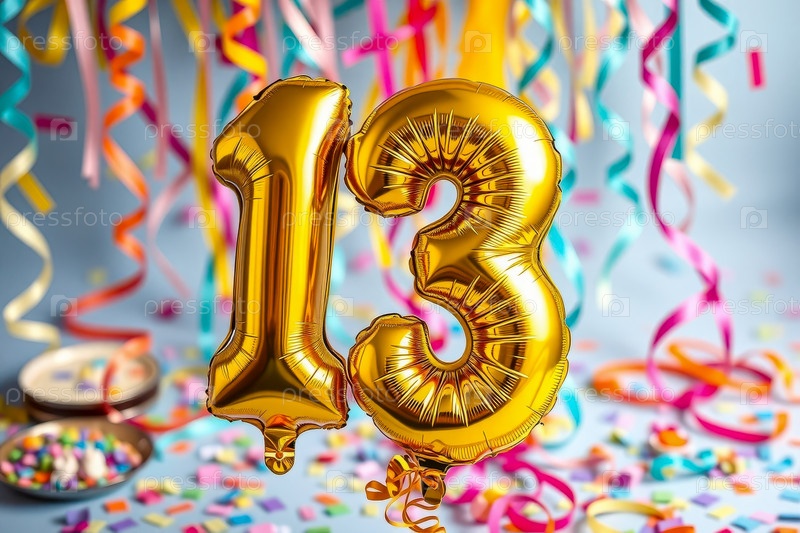 Гелий день рождения воздушный шар форма номер тринадцать золотые буквы фигура 13 праздник праздничный фон