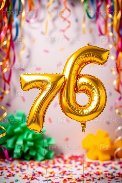 Гелий день рождения воздушный шар формы номер семьдесят шесть, золотые буквы фигура 76 праздник праздничный фон декор