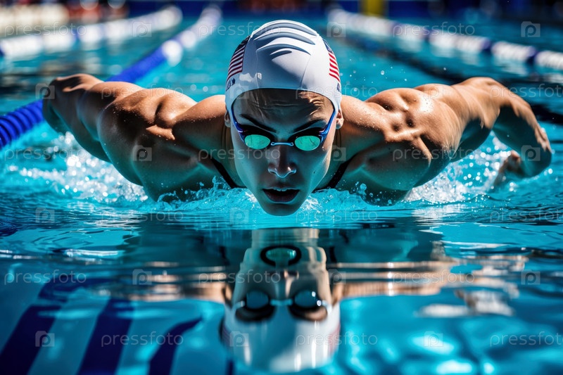 Генеративный Человек спортсмен пловчик плавание скоростная гонка в бассейне, летние Олимпийские игры соревнования AI