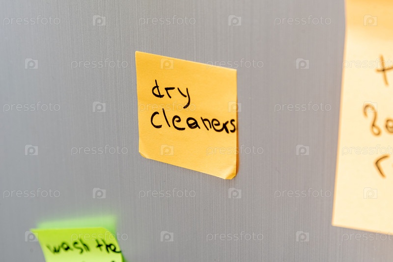 Наклейка напоминания, приклеенная к двери холодильника, чтобы забрать грязную одежду