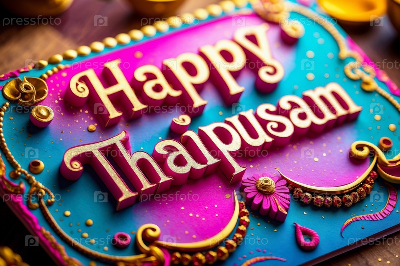 Тайпусам Карта поздравлений с индуистскими праздниками с перцем павлина и фоном масляной лампы AI Generative
