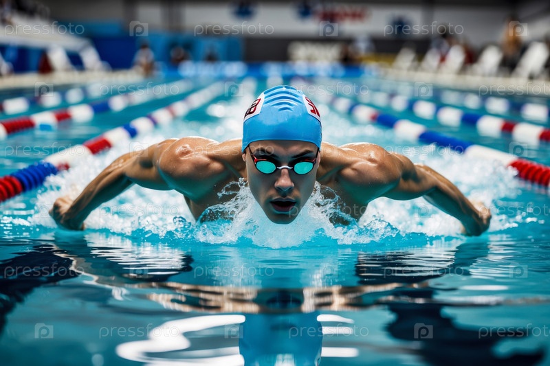 Мужской спортсмен пловчик плавание скоростная гонка в бассейне, летние Олимпийские игры соревнования AI Generative