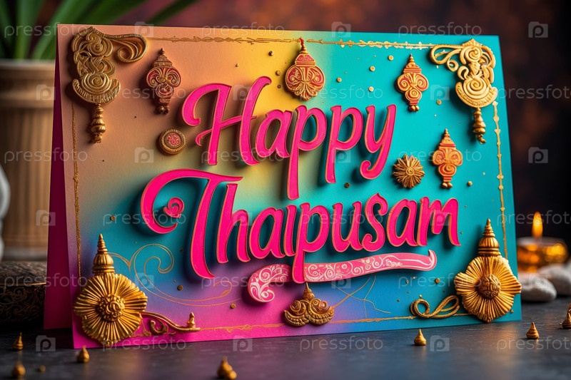 Тайпусам Карта поздравлений с индуистскими праздниками с перцем павлина и фоном масляной лампы AI Generative