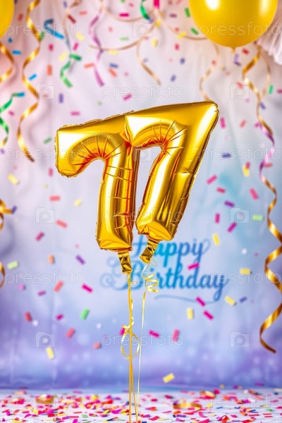 Гелий день рождения воздушный шар формы номер семьдесят семь, золотые буквы фигура 77 праздник праздничный фон декор