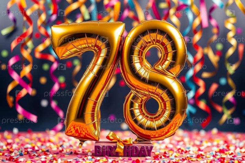 Гелий день рождения воздушный шар формы номер семьдесят восемь, золотые буквы фигура 78 праздник праздничный фон декор