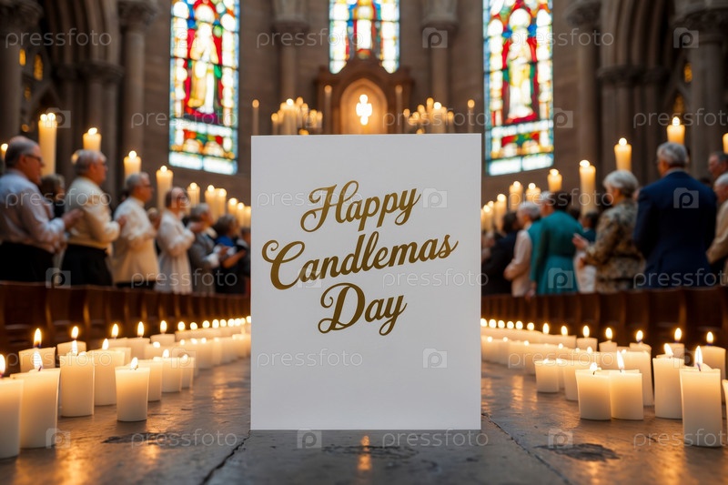 AI Generative Candlemas Day открытка, люди празднуют традиционный праздник в христианской церкви