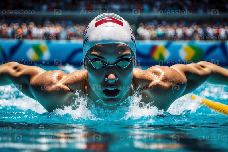 AI Generative Женщина спортсменка пловчик плавание скоростная гонка в бассейне, летние Олимпийские игры соревнования